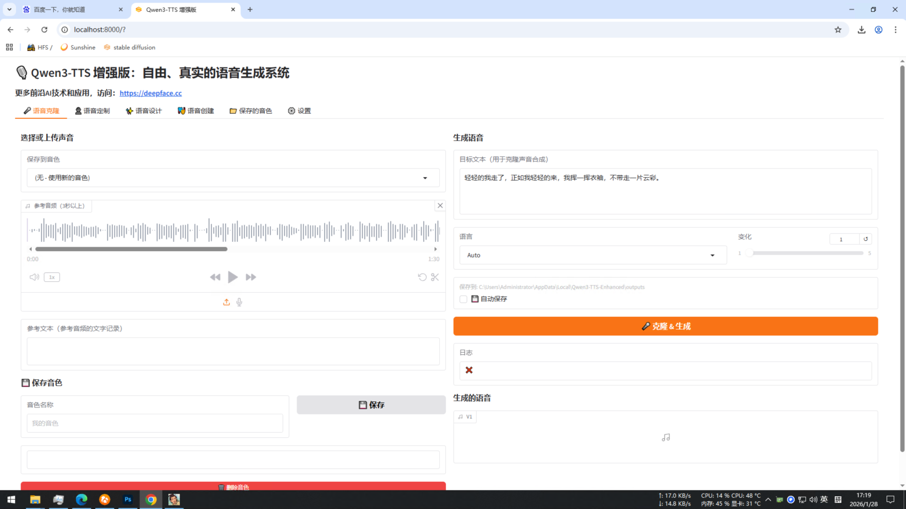 今天分享的 Qwen3-TTS V2版(Qwen3-TTS 增强版)基于社区大佬NeoKazuya开源的版本打包支持,该版本保留了官方原版的三个功能外,新增音色保存功能,还新增了一个新的功能,即支持上传多个音色融合成一个新的音色。我在原版的基础上修复了几处bug,并新增了Flash_Attn加速,自动检查显卡是否支持加速,优先启用加速提升生成速度;新增了多出显存优化和回退机制,防止多次生成导致报显存错误。